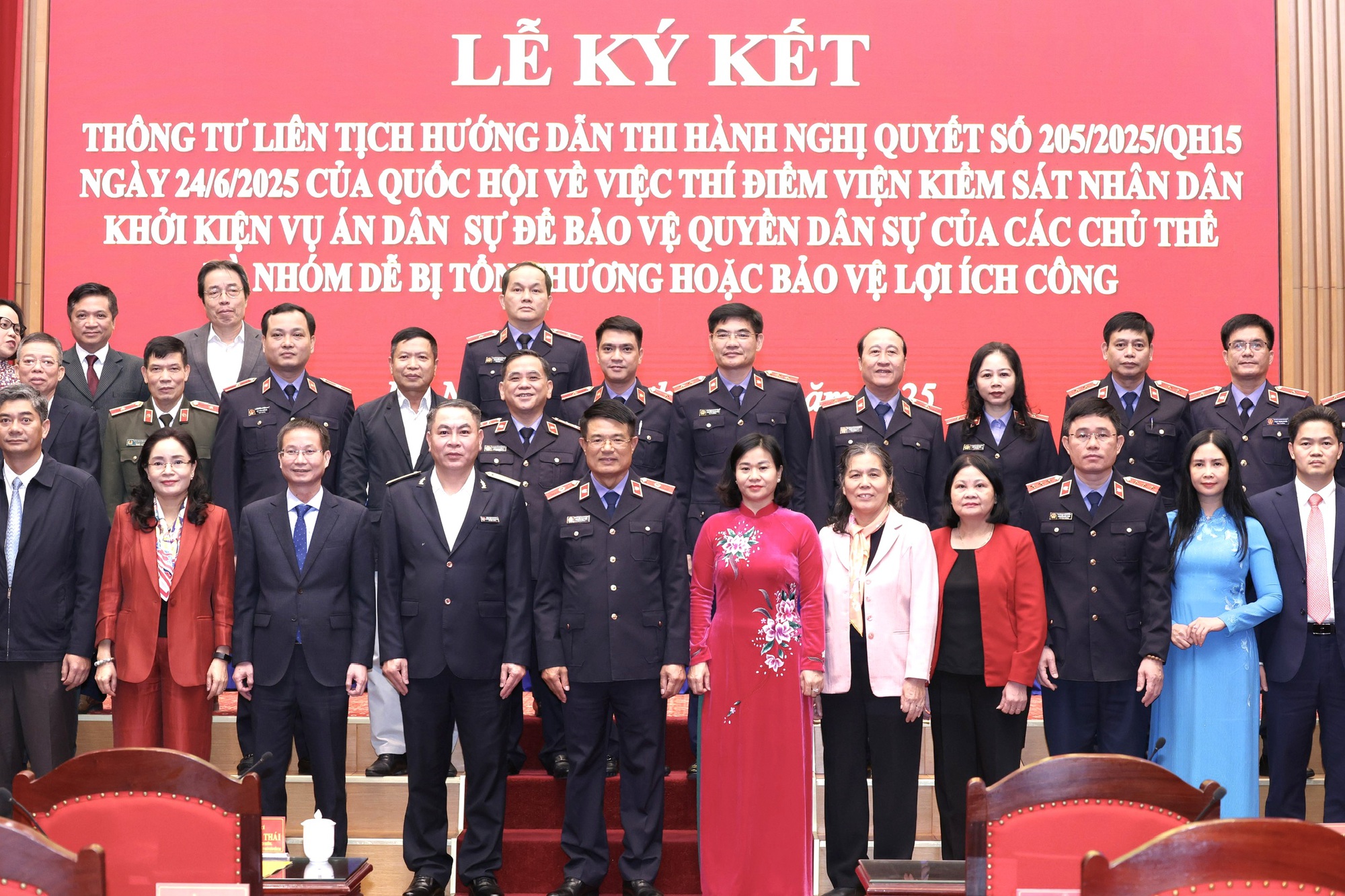 Cùng với việc ký kết Quy chế phối hợp, thực hiện Nghị quyết của Quốc hội, Viện KSND tối cao đã chủ trì, phối hợp với Toà án nhân dân tối cao và 12 bộ, ngành khác có liên quan xây dựng Dự thảo Thông tư liên tịch gồm: Kiểm toán Nhà nước, Thanh tra Chính phủ, Bộ Công an, Bộ Tư pháp, Bộ Tài chính, Bộ Công Thương, Bộ Xây dựng, Bộ Y tế, Bộ Nông nghiệp và Môi trường, Bộ Văn hoá, Thể thao và Du lịch, Bộ Dân tộc và Tôn giáo. Việc các bộ, ngành nhất trí cùng Viện KSND tối cao xây dựng Thông tư liên tịch này cho thấy sự đồng lòng, quyết tâm, thống nhất cao trong việc thực hiện chủ trương mới của Đảng và quy định mới của pháp luật về bảo vệ quyền dân sự của chủ thể thuộc nhóm dễ bị tổn thương và lợi ích công.
